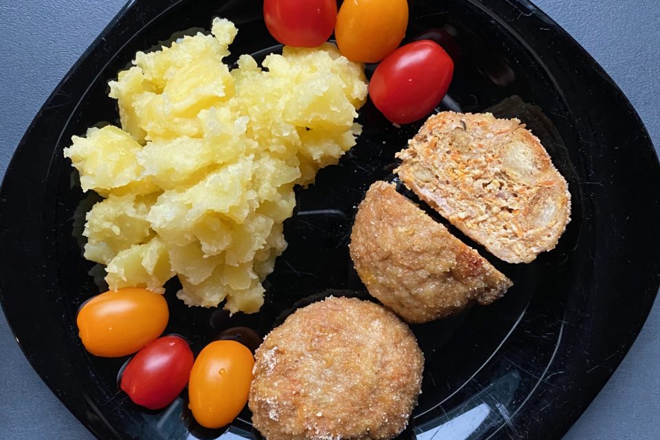 Sucháre zlejem horúcou vodou. Mrkvu očistím a nastrúham najemno. Do misy vložím mleté mäso, pridám nastrúhanú mrkvu, sucháre (vyžmýkané od prebytočnej vody), vajíčko, pretlačený cesnak a pretlačenú cibuľu. Ochutím koreninami a rukou premiesim všetky suroviny, aby sa rovnomerne prepojili.